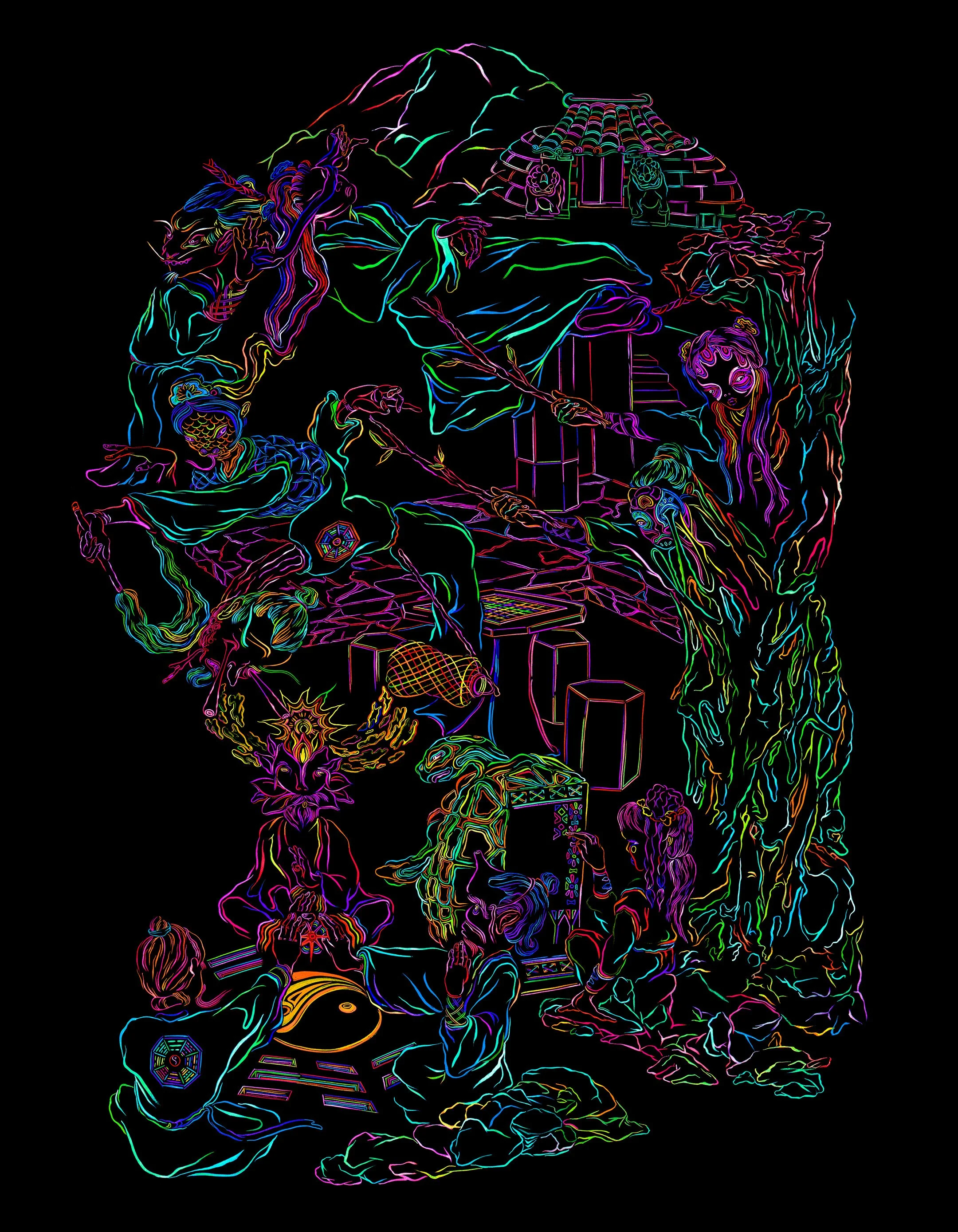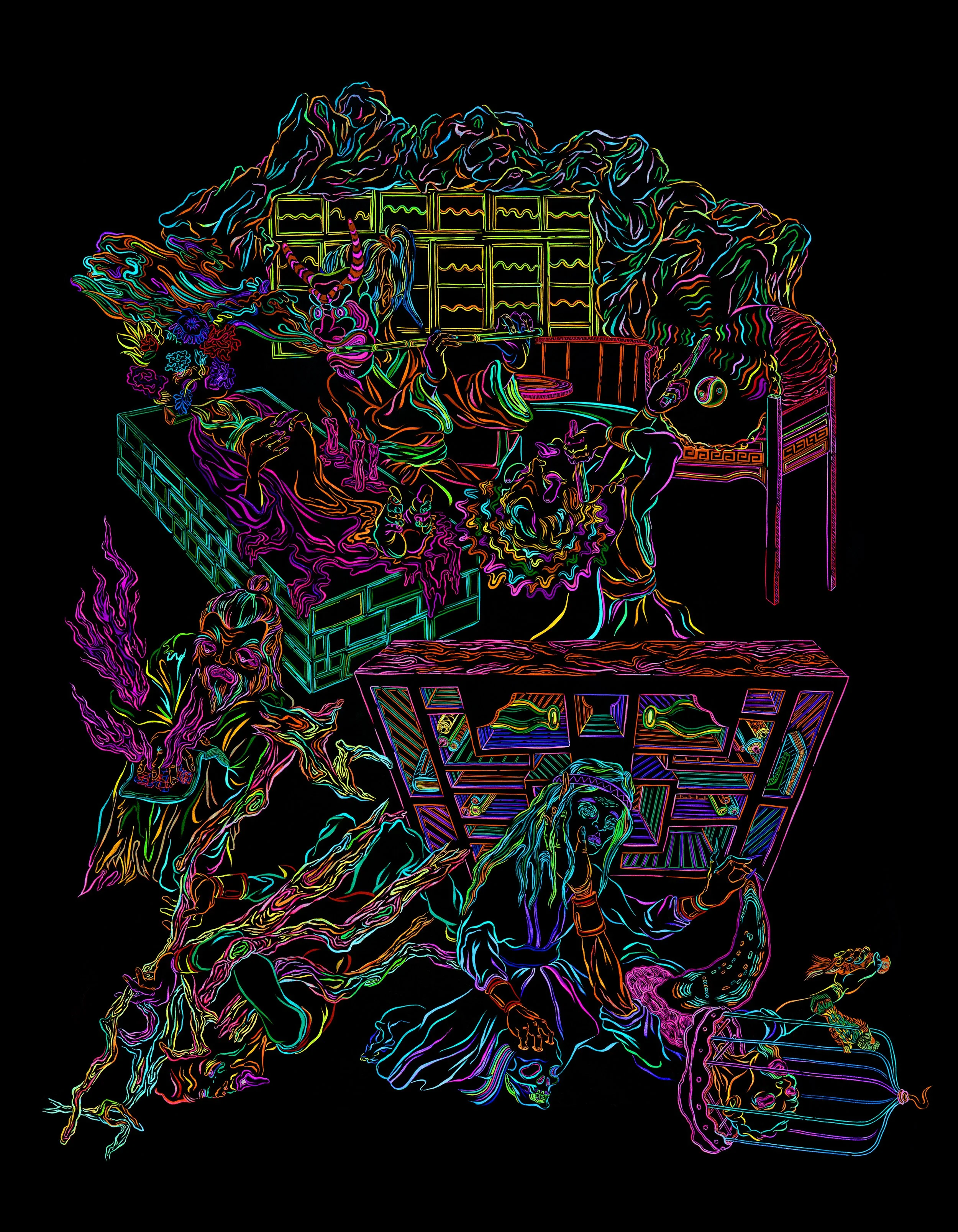This series of lenticular light boxes are material adaptations of the animations found in Retainers of Anarchy. They serve as experiments in sequential imagery within the interlaced format of lenticular printing.